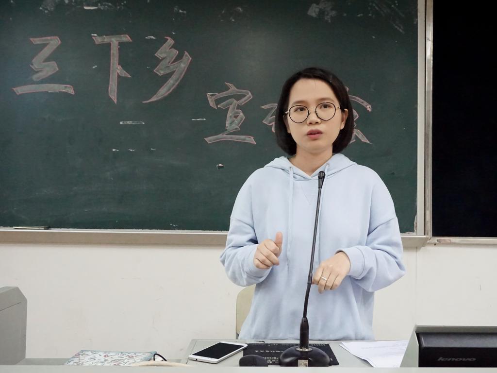 15级院队宣传组组长吴瑶从下乡前、下乡时两个时间段分别讲述了相关的任务和注意事项。前期准备中,她认为可以提前准备一些后期可用的素材,如队员合照等;她也提到除了队服和相关海报、徽章的设计也是必不可少的。在下乡过程中,不管是照片的拍摄还是推文的撰写,对于宣传组队员来说,一定要有善于发现美及捕捉真情的眼睛,只有不同的审美才能碰撞出火花,让相关推文、照片等更加精彩。