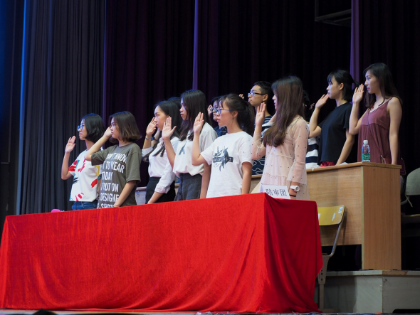 陪审团是英美法系法庭中的重要角色。本次模拟法庭的陪审团由部分观众组成,让观众参与到法庭中,感受法庭的正义威严。在对模拟法庭的舞台布景作简单介绍后,庭审正式拉开序幕。法官到庭,并要求核对控辩双方身份。其后陪审团就座,进行庭前宣誓。