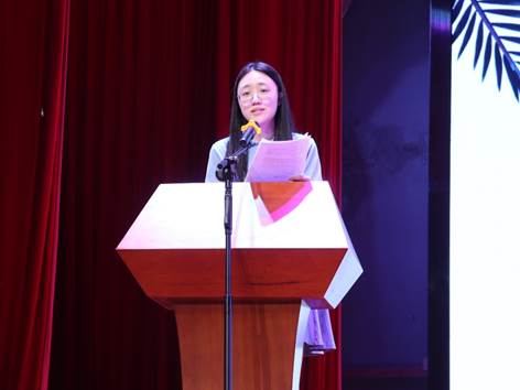 随后,教师代表杨幸幸博士上台讲话。她从初入大学时迷茫与挣扎的个人经历展开,以此告诉同学们不惧迷茫、好好学习,要通过四年大学学习生活更好地认识自己、定位自己、发展自己,将每一次的探索都转化为一次提升自己的宝贵机会,从而获得真正的成长。