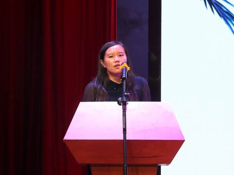 法学(国际经济法)1802班许晴作为老生代表发言。她建议新生要珍惜青春,把握当下,不惧未知,勇敢尝试新的事物。此外,作为青年老员工,还应尽己所能地为社会做出贡献,参与到祖国和社会的建设中。她祝愿新生在接下来的四年里,收获喜悦,为人生的美好未来打下坚实基础。