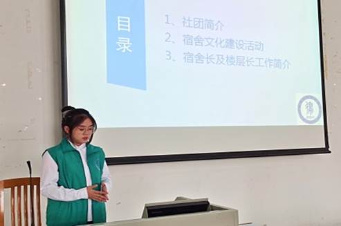 自律会古意琳同学则对宿舍文化建设及自律会工作进行了介绍,使同学们更加了解集团自律委员会的日常工作及作用。