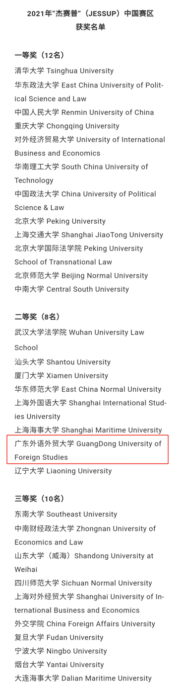 2021年3月15日至4月18日,由美国国际法员工联合会主办的“Jessup”国际法模拟法庭竞赛国际赛于线上举办。第十九届“Jessup”国际法模拟法庭竞赛中国赛区选拔赛因疫情原因取消,国内赛成绩将以在国际赛中中国赛队的成绩为基础得出排名及奖项。本届比赛共有来自全球的565支队伍同台竞技,经过Preliminary Rounds、Advanced Rounds、Elimination Rounds和Championship Round的激烈角逐,伟德体育代表队最终以国内排名第19名的成绩,荣获全国二等奖。