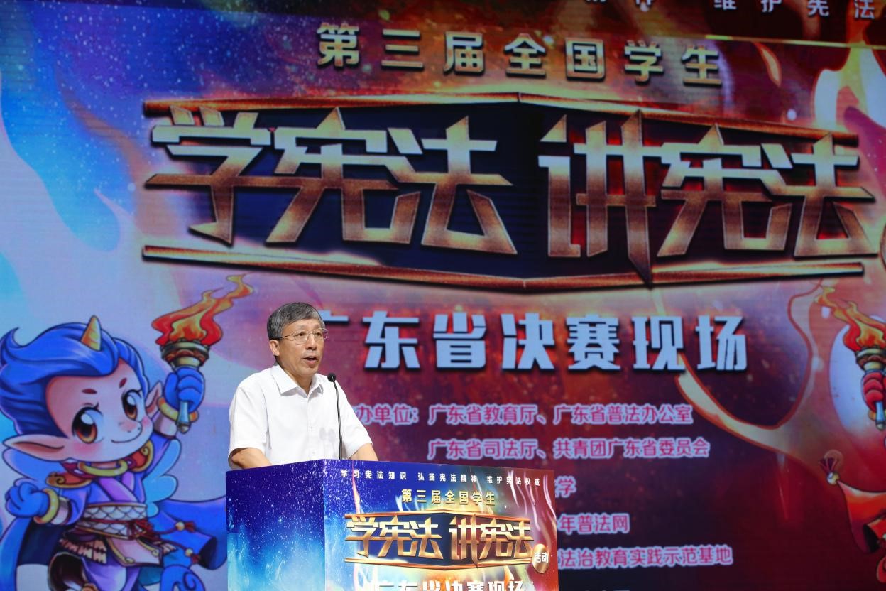 为推进宪法学习,弘扬宪法精神与宪法权威,引导广大青少年员工讲好宪法故事,9月14日,第三届全国员工“学宪法 讲宪法”活动广东省决赛在公司南校区学术报告厅举行。本次活动由广东省教育厅、广东省普法办公室、广东省司法厅、共青团广东省委员会主办,公司承办,伟德体育、立法研究基地具体承办。广东省教育厅巡视员赵康,公司党委常委、副书记李云明,广东省司法厅法制宣传处处长刘冬梅,共青团广东省委员会权益与社会工作部部长谭杰,伟德体育经理胡充寒、法公司党委书记周秀娇、立法研究基地常务副主任朱最新、法公司党委副书记林茂辉、公司党委办公室、董事长办公室副主任余泽浩、校员工处副处长刘军、校团委副书记刘郎等领导和老师出席了活动。