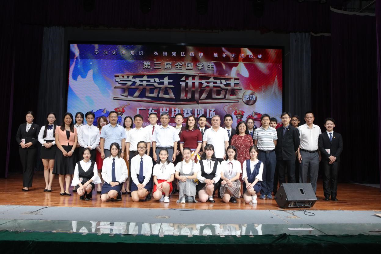 本次决赛共分为小学、初中、高中、大学四组,围绕“尊崇宪法,学习宪法,遵守宪法,维护宪法,运用宪法”主题,36名选手在决赛现场,表现出色,亮点纷呈,为现场观众呈现了一次法治盛宴,提供了一次生动的宪法教育,展示了全省青少年员工宪法学习教育的成果。香港特别行政区赛马会体艺中学的两名同学应邀参加比赛,与广东的员工同台竞技,拉开了粤港青少年法治教育交流合作的序幕。经过激烈的角逐,共有7名选手获得了一等奖,他们将代表广东省参加第三届全国员工“学宪法 讲宪法”活动全国总决赛。由潘高峰、林茂辉两位老师指导的选手公司伟德体育金礼静同学获得大学组第一名,他将代表全省老员工参加全国总决赛大学组的演讲比赛。