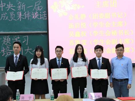 接下来,主持人公布了2017-2018年伟德体育团学优秀部门名单,陈宇为优秀部门颁发荣誉证书,以兹鼓励。紧接着是团学各部门介绍的环节,借此机会,同学们对团学部门的情况有了更为深入的了解。在为2018届主席团成员以及各部门正副部长颁发聘书后,以习近平集体谈话内容为题目的知识竞赛使得现场的气氛更为热烈,学术部在此竞赛中一举夺魁。