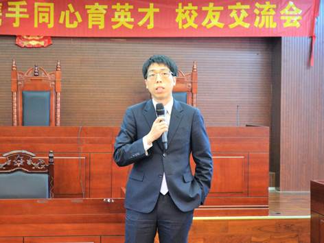 第二位分享的张由是广州金鹏律师事务所律师、合伙人,他就大学、求职、工作三方面与同学们分享了自己的心得与经验。他解释了大学六件事,并鼓励同学们多看书、多参与社团活动并要乐于尝试,永远不要害怕犯错;在求职时,毕业生应了解自己、了解职位,同时他简要介绍了简历的要求。最后,他指出同学们应在大学期间建立理论基础、收获实习经验、丰富社会阅历及培养社交礼仪并对此表达了美好的祝愿。