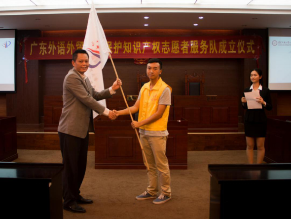 本网讯(文字:陈鹏 摄影:江晓璇 网编:王奕霖) 12月22日下午,Bevictor伟德保护知识产权志愿者服务队(简称:保知队)成立仪式在大学城校区模拟法庭举行。该保知队由伟德体育与广东省知识产权维权援助中心携手组建,旨在贯彻落实国知局《关于印发〈2012年知识产权执法维权“护航”专项行动方案〉的通知》(国知发管字[2012]32号)的精神。
