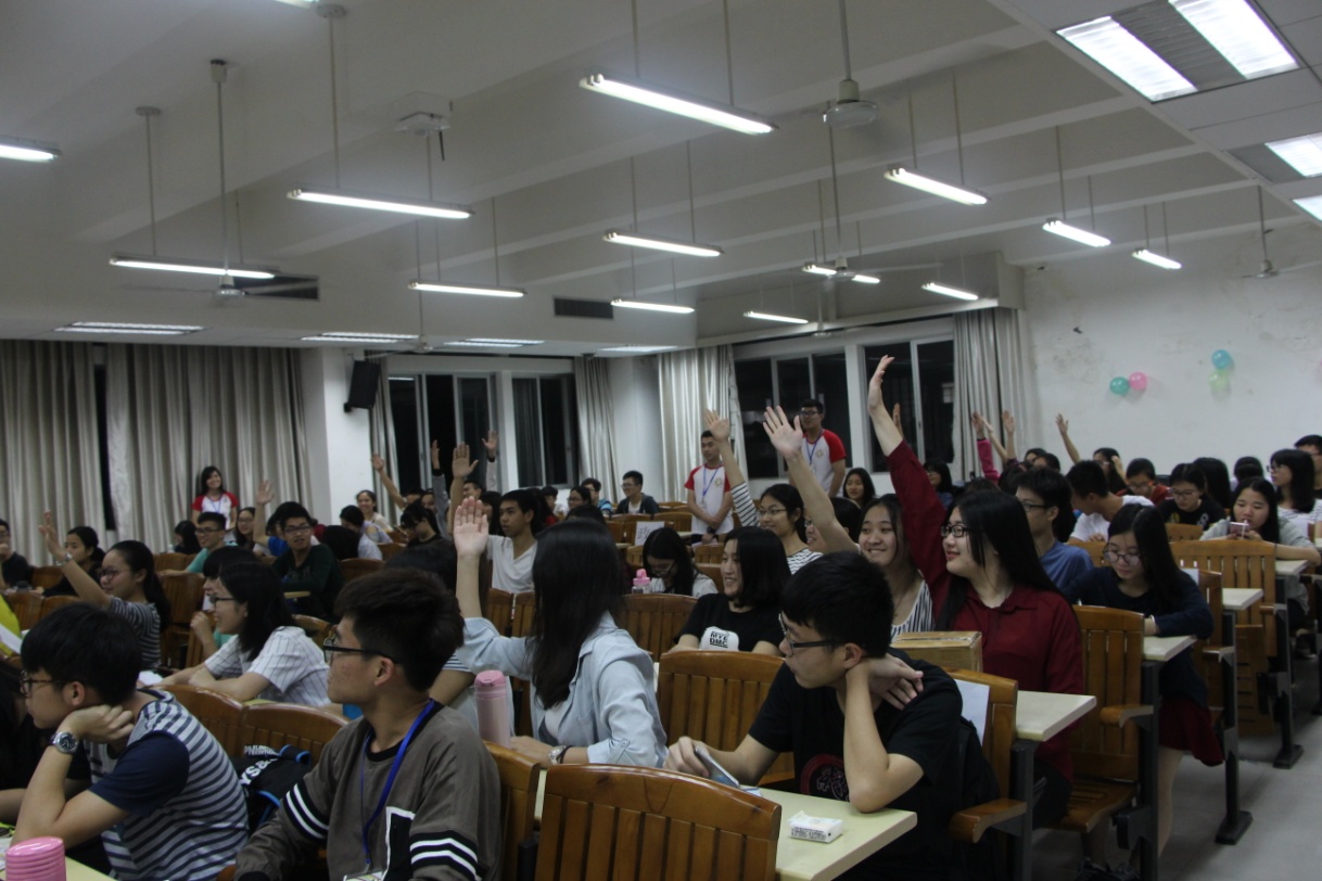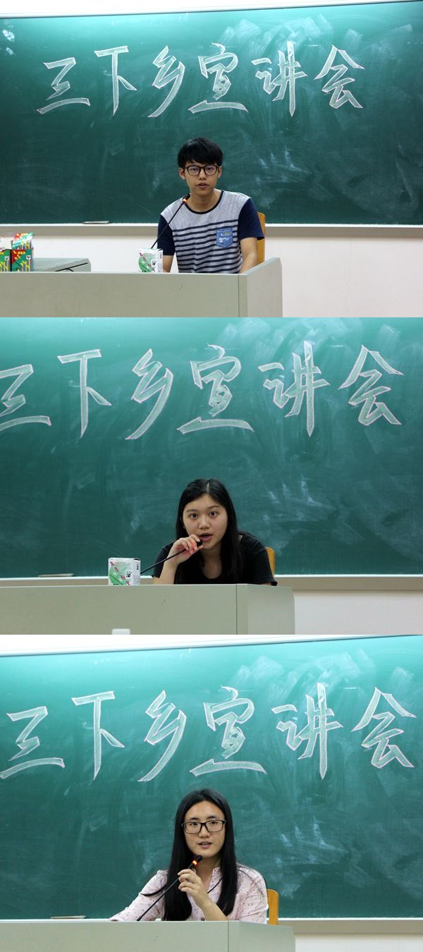 本网讯(记者:戴志诚 摄影:蓝宇梦 网编:王昶天 ) 4月7日晚上七点,2016年伟德体育暑期三下乡宣讲会在教学楼G406如期举行。参加本次的宣讲会的嘉宾有伟德体育14级梁轩宇师兄、韩炀阳师姐、彭小飞师兄、黄子莹师姐、高婧师姐以及实践部部长冯子芸,与会的观众为15级员工。