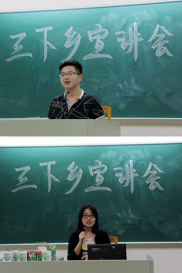 紧跟着,14级两位班队队长较为全面地讲解了活动的实际情况。14法二班队队长彭小飞强调了队伍强大的凝聚力和执行力,包括了团队的文化建设,人尽其用,三下乡期间每日小组例会和全体会议,每日反省。关于策划方面,大家需要参考能拿到的所有资料,注意字体、格式、文档目录等细节问题,明确每位队员的职责,制定好日程人员安排表格。踩点时需要掌握一些重要部门和医疗站点大体的位置,首先应得到基地老师领导的大力支持,留出足够的空间与时间和当地的相关单位配合。14法三班队队长高婧开头让我们欣赏了去年的活动视频,精彩有趣,给人留下深刻印象。她强调了队员的积极性,号召全班参加。她从义教内容、普法之行、调研之行三个部分为我们作生动的介绍,调研方面,她指出应提前准备多套问卷,针对不同方面采取不同措施。她也强调了人身安全问题,要集体出行,避免单个行动,多加注意个人财务安全。