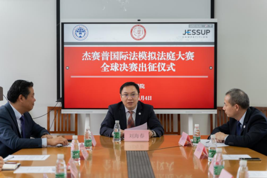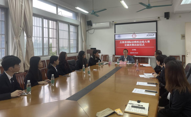 刘海春为赛队作出征动员讲话,他从广外校训“明德尚行,学贯中西”的阐释切入,结合法学学科“德法兼修”的人才培养目标,强调同学们在大学里邀注重提升知识、能力,更重要的是要锻造优秀的品格,并指出本次赛队成绩的突破便是我们培养有家国情怀、国际视野、扎实学识的法治人才的最好体现,他祝愿同学们本次出征全球决赛路途平安、取得满意的成绩。