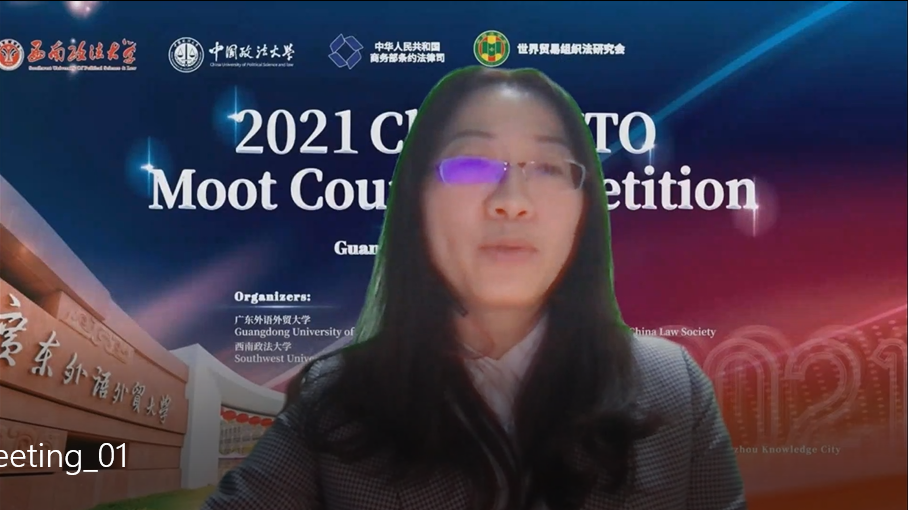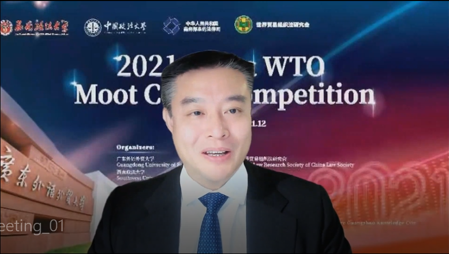 WTO上诉机构前法官赵宏女士满怀深情地回顾了中国加入WTO以来的辉煌历程,她认为第十届“中国WTO模拟法庭竞赛”对中国加入WTO二十周年有着里程碑般的纪念意义。同时,她感谢了本届大赛承办单位对赛事的支持和贡献,并对国际法学在中国未来的发展提出了两点期望:一是鼓励后浪积极参与到WTO以及多边规则的发展进程中,不断壮大高素质涉外法治人才队伍;二是号召各方专家和学者为推动构建公正、合理的国际规则体系贡献中国智慧。最后,她对本次赛事的圆满举办以及获奖队伍表示衷心的祝贺。